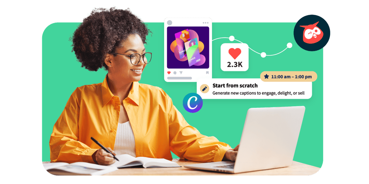 With Hootsuite, you can schedule posts to go live anytime — even if you’re fast asleep. Plus, create content quickly with Canva templates and have AI write your captions and hashtags for you.